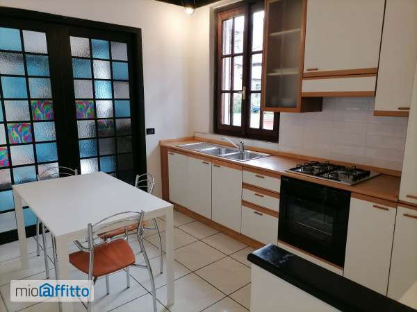 Affitto mono bilocale al piano terra di 40 mq con ingresso indipendente, senza spese condominiali, ideale per una persona. Composto da cucina, camera da letto, bagno, armadio a muro. Cortiletto esterno con giardino in comune. Riscaldamento termoautonomo. Completo di aria condizionata con pompa di calore e lavatrice-asciugatrice. L'appartamento non ha box ne cantina. Vicino alla stazione ferroviaria.