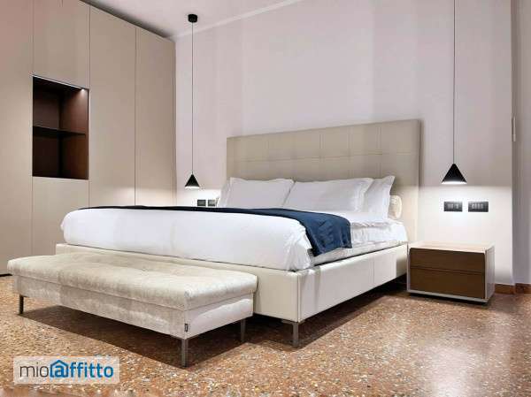 [ita] Disponibile da: 12 06 2026 Mensilità minime prenotabili: 1 Per prenotare l'annuncio clicca sul bottone "prenota Qui" [eng] Available from: 12 06 2026 Minimum months rental: 1 to book the listing click on the button 'book here' Magnificent two-bedroom, two-bathroom apartment; located on the 2Nd floor (with elevator) of a historic building in the city center, in a strategic and exclusive setting: a few steps from Piazza Santo Stefano and the most famous monuments of Bologna. Guests have access to a fully equipped kitchen and are provided with bed linens and towels. Upon arrival, our staff will be waiting at the apartment to explain how everything works and to hand over the keys. During your stay, our staff is available to address any requests or concerns. This splendid two-bedroom apartment of approximately 130 sqm, completely renovated in February 2025, is equipped with high-quality finishes, such as latest-generation noise-reducing windows, Venetian laminate flooring in all rooms, custom-made furniture by famous European designers, a romantic view of the enchanting Via Santo Stefano, as well as a fast fiber optic connection. The apartment opens onto a welcoming entrance that leads into the spacious living room. Two spectacular columns separate the dining room from the relaxation area, giving a touch of opulence to the relaxed atmosphere that reigns in the apartment, and framing the wonderful view, which through two windows opens onto one of the most famous streets of Bologna, to reach a glimpse of the Asinelli tower. The dining room is characterized by the warm nuances of the wood paneling, which contrasts wonderfully with an elegant 6-person oval glass table. The living room is instead furnished with a refined custom-made piece of furniture, where the large 65” smart tv is installed, and offers a large bookcase, a 3-person sofa and two comfortable armchairs. An imposing sliding wooden door, which echoes the decoration of the boiserie in the dining room, hides a kitchen that amazes guests with its bright colors and the elegance of the stone-effect coverings. It is an intimate space, but excellently organized and well-equipped, which provides a dishwasher, Nespresso coffee machine, toaster, column fridge, electric oven and gas stove. From the kitchen, a staircase leads to a service room, equipped as a laundry room and located on the lower floor. The layout of the apartment is comfortable and rational, both large bedrooms are accessible from the living room and are equipped with luxurious private bathrooms, covered in micro-cement. The luxurious master bedroom is furnished with a king size bed (200 x 200 cm), is equipped with a large walk-in closet, a custom-made bookcase, an armchair and a practical desk, strategically overlooking the picturesque Bolognese houses that follow one another in via Santo Stefano. There is a second bedroom, very bright thanks to the double view, equipped with a double bed (160 x 200 cm) and a two-door wardrobe. The apartment has two en-suite bathrooms with windows, one of which features a spectacular bathtub, while both boast large custom-made showers. Amenities: - Nespresso machine (caps not included) and toaster - High speed Internet in optic fiber, with Wi-Fi - Washing machine, clothes rack, iron and ironing board - Centralized heating - Water softener - Air conditioning in every room - 65” tv in the living room - King size bed (200 x 200 cm) The rental price includes the initial and the final cleanin...