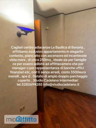 Cagliari centro adiacenze la Basilica di Bonaria , affittiamo esclusivo appartamento in elegante contesto, piano alto con ascensore ed incantevole vista mare , di circa 250mq , ideale sia per famiglie che che per manager o per rappresentanza come banche uffici finanziari etc, con o senza arredi, costo 3500euro mensili , ape d. Dotato di ampio doppio parcheggio coperto _