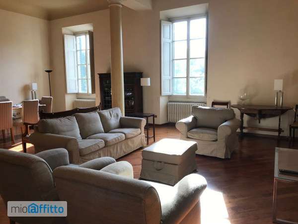 Questo appartamento si trova in una posizione ottimale e strategica. In centro ma raggiungibile in auto. L'appartamento è collocato in un bel palazzo di fine ottocento, servito da ascensore. L'appartamento è elegante, con una generosa superficie di 160 Mq, e con ottima divisione tra zona giorno e zona notte. Le condizioni generali sono ottime, e si presenta completamente arredato. Gli affacci, sia sulla Piazza che sui giardini interni, consentono di avere un'ottima luminosità. L'appartamento si compone di: Ampio ingresso, bellissimo salone di 60 mq con colonne, la cucina è abitabile, con accesso al balcone. La zona notte è separata ed è composta di: un bagno grande con doccia, un ripostiglio con lavatrice; un disimpegno con armadiatura a muro, una grande camera da letto, doppia con accesso al balcone; e una camera da letto matrimoniale con cabina armadio e bagno en-suite con vasca e con finestra. Completa la proprietà un'ampia soffitta ideale per riporre valigerie e attrezzature sportive. Esposizione a sud. Riscaldamento autonomo. Aria condizionata a pompa di calore freddo caldo. Le camere affacciano entrambe sui giardini interni: molto tranquille e luminose. Si richiedono referenze documentate che possono comprovare la solvibilità nella locazione. Contratto transitorio con cedolare secca. No residenza. Non viene concesso il sub-affitto.