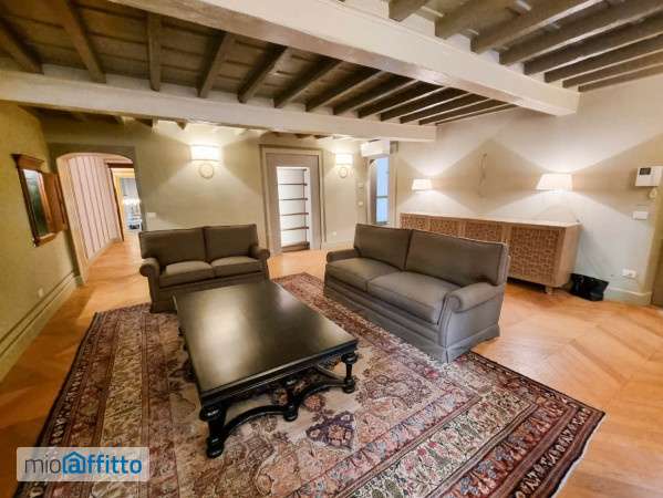 Nei pressi di Piazza Pitti e Piazza Santo Spirito, elegante appartamento di charme di circa 176 mq situato al primo piano di signorile palazzo fiorentino. La proprietà offre ampia zona giorno con camino e doppia esposizione, corridoio che porta alla cucina attrezzata ed abitabile, camera padronale e seconda camera matrimoniale affacciate sull'interno in contesto gradevole e silenzioso, bagno con doccia e secondo bagno di servizio entrambi en suite, possibilità terza camera, ripostiglio e graziosa corte interna privata. L' immobile è arredato raffinati mobili su misura e con finiture di pregio. L'immobile viene locato completamente arredato. Gli animali non sono ammessi. € 4. 500 + utenze Libero dal 1 Giugno, contratto transitorio minimo 1 anno, massime referenze. No affitti turistici, no sublocazioni.