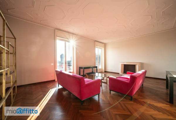 Al settimo piano di uno stabile signorile in Corso di Porta Vittoria, proponiamo in locazione un elegante trilocale di ampia metratura, sviluppato su un unico livello e caratterizzato da spazi generosi e una vista unica sul centro storico. L’ingresso, ampio e di rappresentanza, è valorizzato da una raffinata pavimentazione in marmo verde e introduce alla zona giorno composta da un luminoso doppio soggiorno impreziosito da camino, ideale per momenti di relax e convivialità. Gli ambienti sono ulteriormente esaltati dalla presenza di parquet a spina italiana, che dona calore e continuità sia al living sia alle camere. Completa la zona giorno una cucina abitabile con zona pranzo, direttamente collegata allo straordinario terrazzo, vero punto di forza della proprietà, perfetto per vivere gli spazi esterni in totale privacy. La zona notte, ben separata da un disimpegno, ospita due camere matrimoniali, di cui una con bagno en suite, oltre a un secondo bagno finestrato. Completano la proprietà un comodo locale lavanderia ripostiglio e un balcone con accesso da entrambe le stanze da letto. L’immobile si distingue per finiture di qualità, che hanno mantenuto nel tempo il loro fascino originario. Viene proposto parzialmente arredato, offrendo flessibilità nella personalizzazione degli ambienti. Presente aria condizionata per garantire comfort durante tutto l’anno. La posizione, tra le più ambite della città, coniuga eleganza storica e vicinanza a tutti i principali servizi, rendendo questa soluzione ideale per chi desidera vivere Milano da un indirizzo esclusivo.