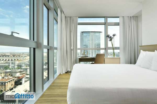 [ita] Disponibile da: 10 03 2026 Mensilità minime prenotabili: 1 Per prenotare l'annuncio clicca sul bottone "prenota Qui" [eng] Available from: 10 03 2026 Minimum months rental: 1 to book the listing click on the button 'book here' ita Questo spettacolare quadrilocale di 147 metri quadrati con tripla esposizione si trova in Torre Galfa, un'iconica torre grattacielo di Milano che con i suoi 103 metri di altezza costituisce un simbolo chiave della skyline della città. L'edificio è dotato di un concierge in grado di fornire assistenza continuativa. Accedendo dalla porta d'ingresso blindata, l'appartamento si apre sulla zona giorno, l'appartamento si apre sulla zona giorno, con cucina a vista, living e tavolo da pranzo per 8 persone. Il salotto è arredato con doppio divano biposto di cui un divano letto con materasso matrimoniale, pouf poggiapiedi, tavolino, libreria doppia e parete con mobile tv e Smart tv. La cucina è perfettamente attrezzata con cappa filtrante a ricircolo, piano cottura a induzione, frigorifero a colonna con freezer, forno elettrico e forno microonde e lavastoviglie incassata, bollitore, tostapane e macchinetta del caffè. è inoltre presente un armadio che può fungere da dispensa. La camera padronale con bagno en suite è composta da letto sommier matrimoniale con testata in ecopelle ignifuga, lampade da lettura a muro, armadio a doppia anta scorrevole e uno scrittoio con cassettiera. Il bagno finestrato è dotato di lavabo d’appoggio con mobile contenitore e specchio a tutta larghezza, sanitari sospesi e cabina doccia con ampio soffione. Dall’Ingresso si accede a un corridoio, dotato di spaziosa parete con armadiatura, da cui si accede ad altre due camere da letto e a un bagno. Entrambe le camere sono dotate di 2 letti sommier singoli (90x200 cm) con doppi comodini e abat jour a muro, ampio armadio e scrittoio. Il bagno è dotato di lavabo, sanitari sospesi e vasca idromassaggio. Un disimpegno include la lavatrice e uno scomparto per la biancheria. E' presente anche una cassaforte. L'appartamento è dotato di tutti i comfort, con finiture pregiate di ultima generazione: - portoncini blindati e porte interne Garofoli, - pavimentazione in listoni di eco parquet (tutti gli ambienti escluso i bagni) - pavimentazione in gres fine porcellanato (bagni) - rivestimenti per nicchie doccia o vasca in mosaico in pasta di vetro - tende a doppio strato (filtrante e oscurante), fondamentali data la facciata di vetro continua - impianto elettrico con illuminazione led a luce calda e sistema di comando e gestione touch - impianto di riscaldamento e aria condizionata con fancoil a soffitto e contabilizzatore individuale descrizione zona Torre Galfa è uno dei grattacieli storici della città, inaugurato nel 1959, progettata dall'architetto Melchiorre Bega. Costruita in cemento armato e con facciate continue di alluminio e vetro, possiede una struttura portante quasi completamente nascosta che le conferisce un’eleganza riconducibile alla “Sua bellezza semplice in grado di comunicare verità”, come scrisse Giò Ponti, uno dei più influenti architetti e designer milanesi. Le sue proporzioni perfette di volumi, semplicità di linee e ascendenza strutturale l’hanno resa un simbolo chiave dello skyline meneghino. L'edificio si trova in una posizione strategica, ben servita dai mezzi pubblici e collegata con il centro città e i principali luoghi di interesse. Sono infatti facilmente raggiungibili a piedi o con il trasporto pubblico il Duomo di Milano, ...
