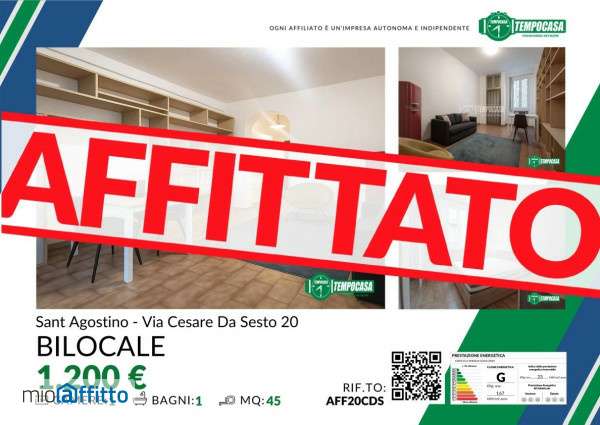 Rif: aff20cds - via cesare da sesto 20? Milano, secondo piano in una delle zone più caratteristiche e centrali di Milano, proponiamo in locazione un accogliente bilocale di 45 mq, posto al 2° piano con ascensore all’interno di una tipica palazzina “vecchia Milano” con ballatoio, dotata di servizio di pulizie condominiali giornaliere dal lunedì al sabato. L’appartamento la soluzione si presenta in buone condizioni e completamente arredata, composta da:? Soggiorno con cucina a vista completa di forno, fornelli a gas e frigorifero;? Camera da letto matrimoniale;? Bagno con box doccia, sanitari a terra e lavatrice. Pavimentazione in cotto in tutti gli ambienti, ad eccezione del bagno rifinito in ceramica. L’immobile gode di una doppia esposizione, che garantisce un’ottima luminosità e ventilazione. Dotazioni e comfort? Riscaldamento autonomo? Infissi in buono stato? Arredato e pronto da abitare la posizione Via Cesare da Sesto si trova a pochi passi da Corso Genova, Sant’Ambrogio e dai Navigli, in una zona vivace e ben servita da negozi, mezzi pubblici e università come naba, Bocconi e Cattolica del Sacro Cuore. Ottimi anche i collegamenti con le linee m2 Verde e m4 Blu della metropolitana. Condizioni economiche? Canone mensile: € 1. 200? Spese condominiali: € 100 mese (utenze gas e luce escluse)? Contratto transitorio a cedolare secca? Libero da subito? Ideale per studenti o giovani professionisti Per maggiori informazioni e per fissare un appuntamento, contattaci su Whatsapp: 351 987 2747 Esclusiva Tempocasa Milano Papiniano – le case più belle le trovi solo con noi!