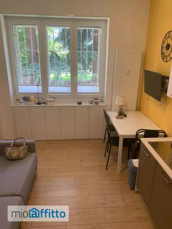 Bilocale ristrutturato ed arredato in contesto con giardino condominiale e portineria. Piano rialzato che da su giardino interno. Ingresso su soggiorno con cucina a vista, bagno grande con doccia e camera da letto matrimoniale con armadi. Presente lavatrice e ariacondizionata. Situato in via tortona vicino al bus 90 92 e a 10 min ca dalla metro porta genova. Zona residenziale tranquilla. Disponibile da marzo per affitti transitori. Gestito da Consulente immobiliare.
