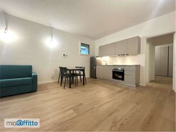 Appartamento disponibile da subito, in elegante palazzina di nuova costruzione consegnata a novembre 2025, mai abitato, zona di notevole prestigio in quanto molto verde ma nello stesso tempo nel centro del paese. L'appartamento si trova al piano primo ed è composto da soggiorno con angolo cottura, disimpegno, camera matrimoniale, bagno, terrazzo abitabile e autorimessa di 32 mq con apertura motorizzata. Finiture di alto livello: Pavimenti in gres effetto porcellanato, aria condizionata Samsung, riscaldamento a pavimento con pompa di calore autonoma (non consumi involontari), impianto fotovoltaico privato potenza nominale 2 Kw, infissi in pvc bianco con doppi vetri, tapparelle frangisole motorizzate, impianto di allarme volumetrico, zanzariere, inferriate, videocitofono, impianto addolcitore acqua. Completamente arredato. Contratto a canone concordato durata 6+2 anni. Deposito cauzionale 3 mensilità - disdetta anticipata 3 mesi - Regime di cedolare secca.