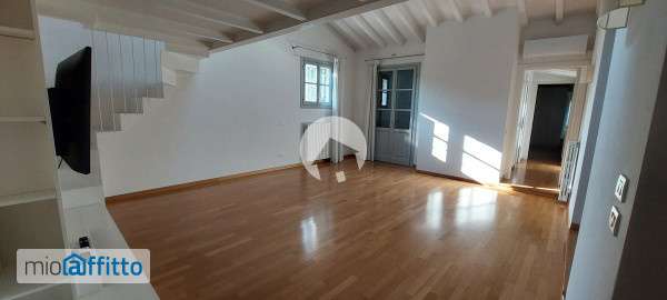 In elegante palazzina del centro storico, servita da ascensore, appartamento signorile con travi a vista al quarto ed ultimo piano, parzialmente arredato, così composto: ingresso, soggiorno con soppalco studio, sala da pranzo con tavolo e sedie, cucina abitabile arredata, 2 camere matrimoniali (di cui una arredata e una con armadio), 2 bagni (uno con vasca, l'altro con doccia, entrambi con finestra) e lavanderia. Cantina e 2 posti auto nel parcheggio coperto, vicino alla palazzina. Parquet in tutte le stanze, ceramica in cucina e nei bagni. Per info: