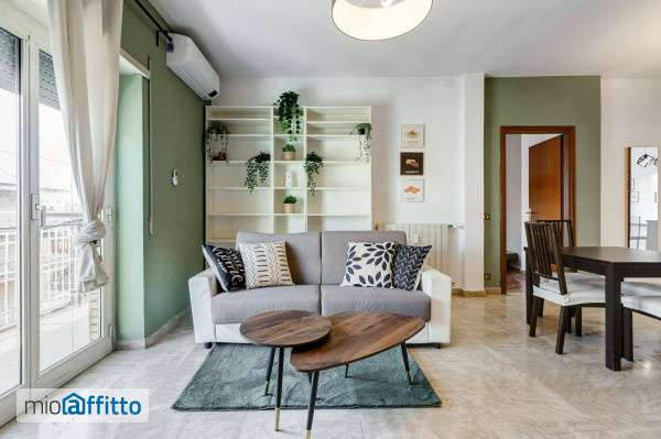 [ita] Disponibile dal: 01 novembre 2025 al 28 febbraio 2026 al prezzo di € 1690 mese Disponibile dal: 01 giugno 2025 al 31 Ottobre 2025 al prezzo di € 2290 mese Soggiorno minimo: 1 mese Nel cuore del quartiere Appio Claudio, a soli 2 minuti a piedi dalla fermata Metro a – Giulio Agricola, proponiamo in affitto un ampio bilocale di 80 mq, completamente arredato e recentemente ristrutturato, situato al 7° piano di un palazzo curato con ascensore. L’appartamento gode di una doppia esposizione est-ovest, che garantisce una luminosità eccezionale durante tutta la giornata, ed è arricchito da due spaziosi balconi abitabili, ideali per colazioni all’aperto o momenti di relax. Composizione dell’immobile: - 1 camera da letto ampia - 1 soggiorno open space di generose dimensioni - 1 cucina abitabile completa di tutti gli elettrodomestici - 1 bagno moderno con doccia walk-in - 2 balconi abitabili Dotazioni e comfort inclusi: - Completamente arredato con stile moderno - Connessione Wi-Fi ultraveloce - 2 Smart tv - Aria condizionata caldo freddo - Lavatrice - 1 pulizia professionale al mese inclusa - Biancheria disponibile su richiesta (con supplemento) Costi aggiuntivi forfettari mensili (utenze + condominio): €250 mese Una soluzione comoda, luminosa e ben collegata, perfetta per professionisti, studenti o coppie in cerca di un ambiente curato e accogliente. [eng] Available from: November 1St, 2025 to February 28th, 2026 at a monthly rate of €1,690 Available from: June 1St, 2025 to October 31st, 2025 at a monthly rate of €2,290 Minimum stay: 1 month Located in the heart of the Appio Claudio district, just a 2-minute walk from Metro Line a – Giulio Agricola, this spacious and recently renovated 80 sqm one-bedroom apartment is available for rent. It is situated on the 7Th floor of a well-maintained building with an elevator. The apartment boasts dual east-west exposure, ensuring exceptional natural light throughout the day, and features two large, livable balconies—perfect for enjoying breakfast outdoors or simply relaxing. Apartment layout: - 1 large double bedroom - 1 spacious open-plan living room - 1 fully equipped eat-in kitchen - 1 modern bathroom with a walk-in shower - 2 spacious balconies Included amenities and comforts: - Fully furnished with modern decor - High-Speed Wi-Fi connection - 2 Smart tvs - Air conditioning (hot cold) - Washing machine - 1 professional cleaning per month included - Bed linen available on request (at extra cost) Flat monthly rate for utilities and condominium fees: €250 month a bright, well-connected, and comfortable home—perfect for professionals, students, or couples looking for a stylish and welcoming space in a lively Roman neighborhood.