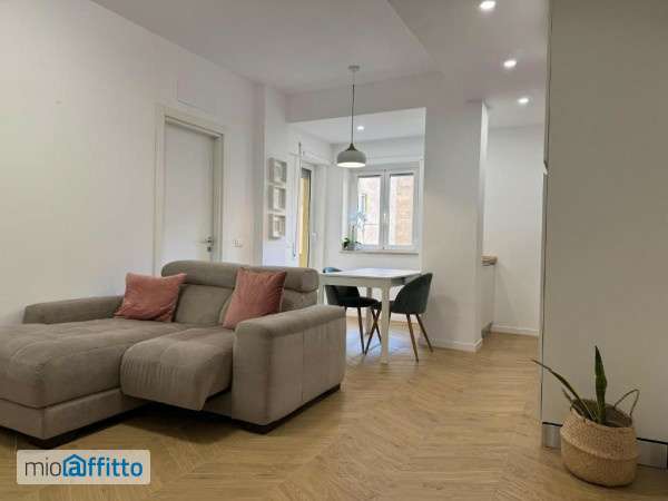 Si affitta appartamento di 50 mq, con balconcino esterno, situato in una traversa di via Tiburtina. Nuova costruzione, completamente arredata (mobilio moderno) e completa di tutti gli elettrodomestici (lavatrice, asciugatrice, condizionatore caldo freddo, ecc), biancheria e utensili. La zona è fornita di tutti i mezzi (treno, metro, bus), presenza di un una zona verse a 100 metri. Servizio di portineria mezza giornata. Parcheggio disponibile (strisce bianche).
