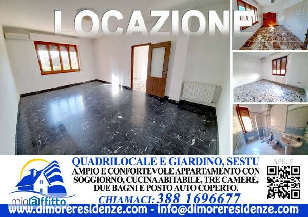 Appartamento in Affitto a Sestu, Corso Italia, zona facilmente raggiungibile e servita, ma lontano dal caos e traffico. Scopri questo ampio e luminoso quadrilocale di 150 m² totali oltre il girdino cortile privato, situato al piano rialzato di una palazzina con sole due unità abitative, appena ristrutturato. L'ingresso indipendente si apre su una veranda accogliente e conduce a un vasto soggiorno, perfetto per momenti di relax. La cucina abitabile è ampia e facilmente arredabile, mentre le tre camere grandi offrono spazio sufficiente per famiglie o gruppi di amici. Con due bagni, non dovrai mai preoccuparti della mancanza di disponibilità! L'appartamento è climatizzato e presenta nuovi infissi che migliorano l'efficienza energetica, garantendo un comfort ottimale durante tutto l'anno. Inoltre, è accessibile a persone con mobilità ridotta, rendendolo adatto a tutti. Il posto auto coperto è incluso nel prezzo, così come l'accesso al giardino privato, ideale per godersi momenti all'aperto. Per affitti transitori da giugno 2025 per un massimo di 18 mesi, si richiedono referenze per gli inquilini. Non perdere l'opportunità di vivere in un ambiente ristrutturato e accogliente! Per la richiesta di visita, compilate il modulo presente sul nostro sito web: ; scopri la video visita interna disponibile in questo annuncio oltre le fotografie. Per ulteriori informazioni, contattaci via email o telefono durante gli orari d'ufficio: Lun-Ven: 09-13:00 e 16-19:00. Non aspettare oltre, questo appartamento potrebbe essere la tua nuova casa!