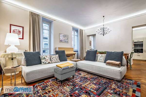 In stabile d'epoca completamente ristrutturato splendido appartamento con rifiniture di pregio: ingresso, sala con camino, cucina semiabitabile, camera padronale con cabina armadi e bagno interno, cameretta, bagno con angolo lavanderia attrezzato a scomparsa, cantina, balconi su entrambi gli affacci. Finemente e completamente arredato (escluso divani della sala e letto matrimoniale). Climatizzazione canalizzata, riscaldamento autonomo, porta blindata, serramenti in legno con doppio vetro a bassa emissività, pavimenti in parquet, allarme. Nel prezzo è compreso un posto auto coperto, raggiungibile con l'ascensore, con accesso tramite cancello automatizzato.