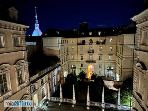 In centro citta' in Palazzo Granieri della Roccia, proponiamo in affitto elegante e signorile appartamento al quarto piano con vista sulla Mole Antoneliana. L' appartamento completamente ristrutturato nel 2012 e finemente arredato e' così composto: ingresso su salotto con adiacente zona pranzo, cucinotta, soppalco su zona giorno utilizzato come possibile ripostiglio, antibagno e bagno, attraverso un disimpegno si accede alla zona notte organizzata con cabina armadi, camera e soppalco utilizzabile come studiolo o all' occorrenza zona notte per ospiti. L' appartamento e' completamente arredato, il riscaldamento e' centralizzato. Possibilita' di un ampio box auto al prezzo di euro 250 mensili.