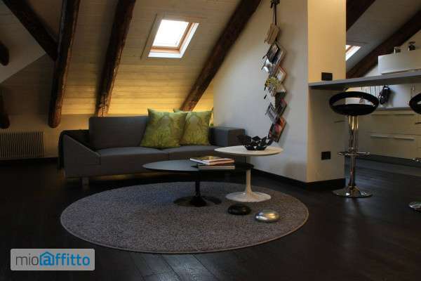 In splendido stabile Liberty di inizio novecento, a pochi minuti a piedi dalla fermata della Metro "principi d'acaja", prestigioso appartamento mansardato alto (altezza massima quattro metri) al quinto piano con ascensore. è composto da ingresso, ampia zona giorno con bow window, cucina con tutti gli elettrodomestici (lavatrice compresa), camera, bagno, terrazzino (parzialmente coperto), ripostiglio e cantina. L'unità è finemente ristrutturata e completamente arredata (arredi su misura), gode di doppia esposizione e di ottima luminosità. Il riscaldamento è autonomo. C'è l'impianto di allarme sia volumetrico che perimetrale e l'impianto di aria condizionata (uno split in camera da letto). La pavimentazione è in rovere termotrattato. Lo stabile è in ottime condizioni generali, il rifacimento dei balconi e del tetto è stato ultimato in primavera 2022. Disponibile dal 1 maggio 2026