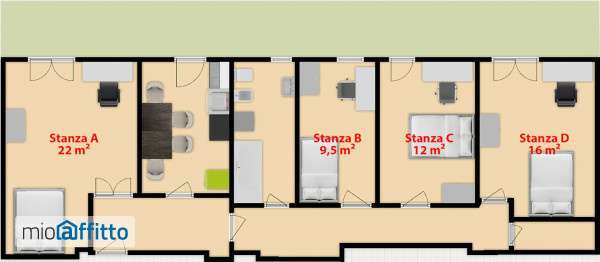 Apartment with 4 Single Rooms Starting from 200 month room + Expenses Available Immediately This furnished apartment offers 4 bedrooms: Room a: 160cm bed, marble floor, wardrobe, and desk (300). Room b: 120cm bed, natural parquet, wardrobe, and desk (200). Room c: 140cm bed, natural parquet, wardrobe, and desk (230). Room d: 140cm bed, natural parquet, wardrobe, and desk (270). Apartment Features: Bathroom: Includes an 8Kg Electrolux washing machine. Kitchen: Equipped with a Candy microwave and a 2m fridge with a large multi-shelf freezer. Balcony: 40sqm (20x2m) overlooking the communal garden. Parking: Large communal parking area; garage available. Rental Details: The apartment is rented as a whole, not by room. Total rent: 1000 month + condominium and utilities (~4050 month room, adjustable based on consumption; centralized heating with meters). Deposit: 2 months' rent. Contract: Short-Term with an agreed rent under the cedolare secca (simplified tax system). Additional Options: Guest room available for use with an extra charge. Important Notes: Non-Smokers only. No pets allowed. A short introduction from prospective tenants is appreciated. Ntraduci la descrizione dell'annuncio in italiano n nhousinganywhere è la più grande piattaforma europea di affitti per alloggi, con oltre 160. 000 proprietà tra camere, monolocali e appartamenti. Permette di prenotare case online in modo sicuro prima del trasferimento, offrendo supporto dedicato e tutela durante l'intero processo di prenotazione.