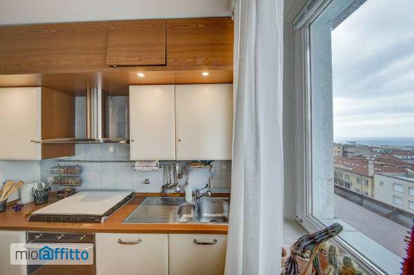 Colle di san Vito, via Montfort, a pochi passi dalle Rive e dal mare, in una zona residenziale e signorile, all'ultimo piano di un palazzo d'epoca con ascensore in vetro, appartamento composto da ampio living con cucina separata da un bel bancone, camera da letto dotata di giganteschi velux con telecomando, bagno e guardaroba. In ottime condizioni, arredato con eleganza. L'appartamento offre degli affacci con bellissimi scorci sul mare. Disponibile dal 1 giugno, in locazione, referenziando. Visita il nostro sito https: