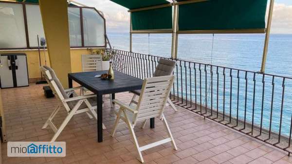 Attico fronte mare con ampia terrazza, camera con letto matrimoniale e singolo, soggiorno con divano letto, ripostiglio, bagno e cucina. Arredato, lavatrice, macchina del caffe', microonde, forno elettrico. Riscaldamento autonomo
