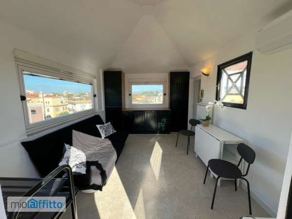 Pieffe Immobiliare propone in locazione delizioso appartamentino posto al piano attico di stabile signorile con servizio di ascensore fino al 3° piano e tramite una scala a chiocciola si arriva al 4° dove si trova l'appartamento con un bel terrazzino con vista a 360° su Roma; da qui si accede all'appartamento composto da soggiorno con angolo cottura su misura attrezzato di elettrodomestici, camera da letto matrimoniale con comodo armadio a muro, bagno piccolino con doccia. L'immobile ha una bellissima vista grazie a delle grandi finestre. Aria condizionata, riscaldamento autonomo Adatto a single Richiesta fideiussione bancaria di 6 mesi. Arredato come da foto Disponibile da subito