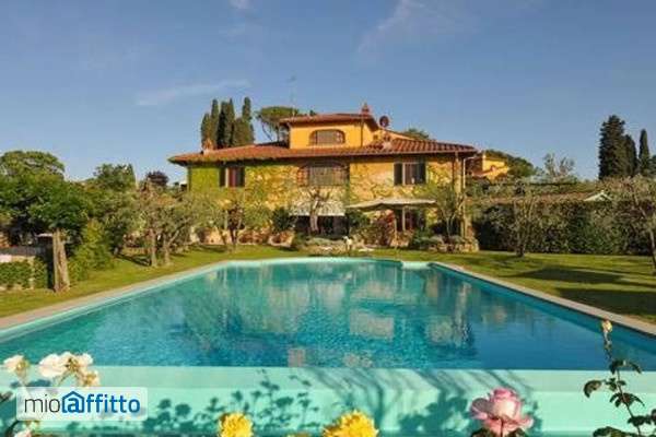 Pozzolatico, a soli 5 km da Firenze, in posizione panoramica, casa Toscana di ca 400 mq, con giardino privato di ca 2000 mq e Piscina panoramica. La casa è disposta su due livelli oltre a Torretta, ed è composta da una zona giorno tripla con camino, sala da pranzo con affaccio diretto sulla Piscina ad uso privato, uno studio con camino cucina e camera di servizio con bagno oltre a lavanderia. La zona notte, è composta da 5 camere con 3 bagni. Totale max 8 posti letto Aria condizionata. Due logge esterne, di cui una con forno. Ampio Parcheggio. Luminosa, ampie aperture con affacci su Firenze e colline circostanti. Completa di arredi, Contratto breve periodo. E' possibile affittare la villaanche a settimane, prezzi su richiesta.