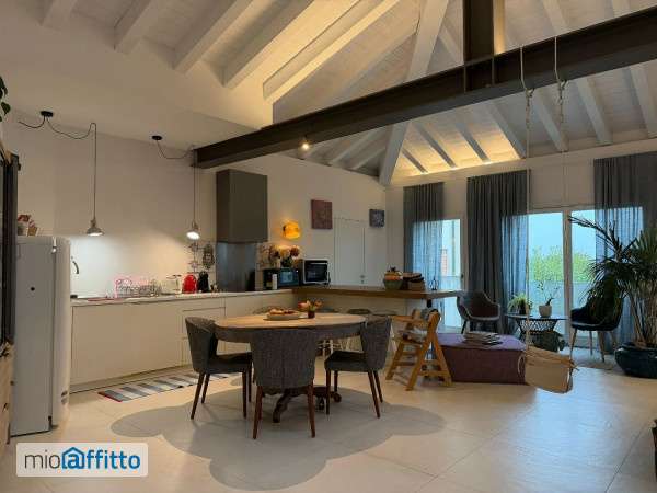 Esclusivo loft di 200 mq con terrazza abitabile e ingresso indipendente Bassano del Grappa se stai cercando un'abitazione fuori dagli schemi, capace di unire spazi importanti, design contemporaneo e una posizione strategica, questo appartamento rappresenta una proposta davvero rara nel mercato di Bassano del Grappa. A pochi passi dal centro storico, proponiamo in locazione uno spettacolare loft open space di circa 200 mq, caratterizzato da volumi straordinari e da un'altezza dei solai che supera i 3,5 metri al colmo, elemento che dona all'ambiente una forte personalità e una luminosità naturale di grande impatto. L'accesso avviene tramite ingresso completamente indipendente con scala privata ad uso esclusivo, dettaglio che garantisce privacy e autonomia. L'ampio spazio interno è stato organizzato con intelligenza e gusto: grazie all'utilizzo di pareti mobili su misura, che fungono anche da armadiature, sono state ricavate due stanze mantenendo la continuità e l'eleganza dell'ambiente open space. Le finiture moderne e accattivanti valorizzano ulteriormente gli spazi, rendendo questa abitazione perfetta per chi desidera una casa distintiva e di rappresentanza. Uno dei punti di forza è la terrazza abitabile di circa 35 mq, già arricchita da piante e dotata di impianto di irrigazione, uno spazio ideale per momenti di relax o per ricevere ospiti all'aperto. Completano la proprietà: Riscaldamento a pavimento Due bagni Cucina arredata con tavolo e sedie Garage molto ampio al piano terra Possibilità di parcheggiare una seconda auto davanti al garage Una soluzione abitativa ideale per professionisti, dirigenti o coppie che desiderano vivere spazi ampi, eleganti e difficilmente replicabili, a due passi dal centro della città. Canone mensile: € 1. 500 Disponibile per visite su appuntamento.