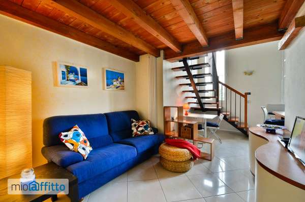 Cin: it037006c2jgj2bnib Charming loft style apartment (40 sqm), an ideal accommodation in Bologna, recently renovated and located on the first floor of a modern building (without elevator) at the brims of the city, in a quiet and green area. Guests have access to a fully equipped kitchen and are provided with bed linens and towels. Upon arrival, our staff will be waiting at the apartment to explain how everything works and to hand over the keys. During your stay, our staff is available to address any requests or concerns. This apartment mixes period finishes, such as the 5 meters high ceiling with exposed beams, with the comfort of a modern and cosy furniture. The property opens up directly onto the living room, furnished with a piece of furniture with a tv and a dvd player and a double sofa bed. A tailor made wooden staircase leads from the day area to the mezzanine, where you find an intimate and cosy sleeping area, complete with a french bed (120 cm wide) and a closet with mirror glass doors. The kitchen is tailor made and, even if quite small, it is fitted with oven, microwave, dishwasher, fridge, freezer and hob. Located at the feet of the staircase leading to the mezzanine floor, the kitchen is fitted with very functional furniture, such as a breakfast counter which permits to comfortably enjoy meals. The bathroom is located behind an elegant white sliding door and is fitted with a washing machine and a spacious shower stall. Extra facilities : -portable a c device Important: guests are required to pay a tourist tax not included in the price (€ 4 per adult, per night. It is applied only on the first 5 nights). Area: The apartment is located in the center of Ca' Bianca district, a quiet residential area a few steps from Via Zanardi, which connects the district to the historic center in 5 minutes by car or a few bus stops. The area is highly strategic, thanks to its proximity to the Marconi international airport, to the ring road exit and to the Bologna Exhibition Center (reachable in 5 minutes by car). In the vicinity of the apartment there are several shops, a supermarket, a newsagent, a pharmacy, a bank, bars and restaurants. The Lame shopping center, one of the largest in all Emilia Romagna, is also a short distance away. Public transportation: Bus 11 and bus 30 stop in front of the house, which take you to the train station and to the city centre in a few stops. Parking: The apartment is located outside the restricted traffic area (ztl). You may park close to the building. Pets: Pets are allowed (€ 20+vat per night, limited to the first 5 nights).