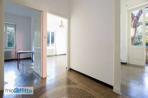 Abbiamo il piacere di presentarvi questo bell'appartamento, con giardino e terrazzo al piano, a Ruta di Camogli. L'appartamento, di circa 90 mq, è posto al primo piano di un piccolo fabbricato indipendente e si compone di un accogliente ingresso alla genovese dal quale si accede a due camere da letto, di cui una con doppia finestra e ad uno studio con balcone. Proseguendo si entra nel generoso soggiorno, anch'esso con due finestre, alla terza camera da letto, e, tramite un piccolo disimpegno, al bagno dotato di vasca ed al secondo bagno di servizio, infine alla cucina abitabile semi-ammobiliata dalla quale si può raggiungere la grande terrazza al piano di mq 27 e il giardino su due livelli. L'esposizione è completamente esterna su quattro lati, il riscaldamento è a radiatori, autonomo con calderina a gas, i pavimenti sono in graniglia alla genovese decorata. Nessuna spesa di amministrazione. L'immobile viene affittato con contratto di locazione 3+2 in cedolare secca a persone referenziate, con residenza, si richiedono garanzie.