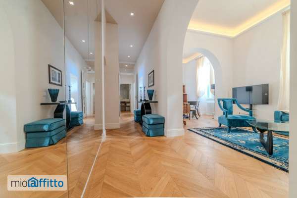 Nei pressi del Lungarno Soderini, all'altezza del Ponte Vespucci, elegante appartamento completamente ristrutturato, situato in palazzo ottocentesco, in una delle zone residenziali più prestigiose del centro storico fiorentino. L'appartamento di circa 130mq, disposto su un unico livello, è ubicato al primo piano del palazzo ed è dotato di ascensore. L'ingresso si apre su un ampio e luminoso soggiorno doppio in cui si trova anche la sala da pranzo, separata da una parete ad arco. La cucina abitabile ed attrezzata, dotata di comodo ripostiglio si affaccia sulla corte interna. Il reparto notte, separato da una porta a specchio, è composto da 2 ampie camere matrimoniali e due comodi bagni con doccia, entrambi finestrati. Ogni spazio risulta essere molto curato, caratterizzato da elementi di arredo raffinati come i pavimenti in parquet, pareti e soffitto rifiniti con cornici decorative, illuminazione sapientemente studiata ed armadi su misura. L'appartamento risulta essere molto luminoso grazie alla doppia esposizione ed ai piacevoli affacci. In tutti gli ambienti, inclusa la cucina, sono presenti l'aria condizionata e le zanzariere. Le parti condominiali sono state interamente ristrutturate di recente, garantendo un contesto curato e di prestigio. Completa la proprietà una comoda cantina. L'appartamento viene affittato arredato. Solo referenziati. No subaffitto.