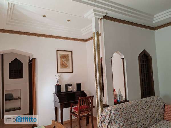Fiuggi fonte in comprensorio esclusivo porzione di villa su due livelli composta al piano terra salone con cucina arredata, sala da pranzo, ripostiglio e bagno, piano intermedio lavanderia e terrazzino; piano primo camera da letto matrimoniale con bagno interno, altra camera singole, altro bagno. Giardino comune con posto auto. L'immobile è completamente arredato (come da foto) e rifinito