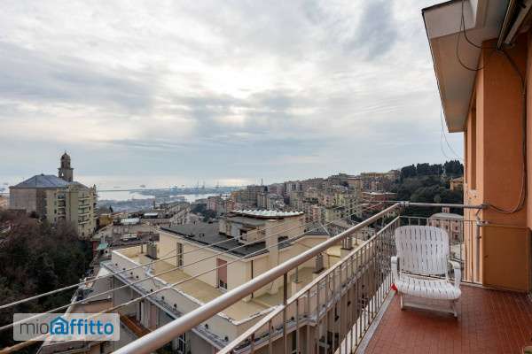 Castelletto san nicola, Via Ausonia, vicino alla Madonnetta, comodo funicolare Zecca Righi (fermata Mario Preve), ultimo piano con ascensore, appartamento arredato, composto da ingressino, soggiorno, 2 camere, cucina, bagno, balcone con bellissima vista mare e terrazzo sovrastante di 70 mq. Circa. Riscaldamento centralizzato. Contratto transitorio. Richiesta euro 790 + euro 170 di spese di amministrazione. Per informazioni, telefonare 010. 57. 40. 135 genovesi in.