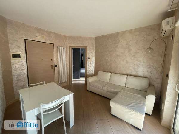 Affittasi miniappartamento mq. 50 circa, 3° piano con ascensore, arredato come da fotografie allegate (piccolo soggiorno, vano cucinino, camera da letto, bagno, n. 2 piccoli balconi, avvolgibili elettriche, aria condizionata, termoarredi, finestre con apertura a vasistas, impianto di allarme, videocitofono). Ottime condizioni.