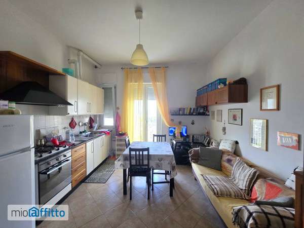Affittasi ampio e luminoso appartamento parzialmente arredato sito al secondo piano composto di grande ingresso sul soggiorno + angolo cottura e portafinestra con uscita sul balcone e vista panoramica, 2 camere di cui una matrimoniale e una singola spaziosa utilizzabile anche come studio, due bagni di cui uno con doccia e lavatrice e l'altro con vasca. Appartamento internamente completamente ristrutturato, con impianti rifatti, tapparelle elettriche, porta blindata, infissi doppio vetro pvc e pavimentazione in gres. Immobile parzialmente arredato solo con cucina e la camera matrimoniale. Esternamente il palazzo è stato completamente rifatto e rinforzato sismicamente, è stato aggiunto il cappotto e sono stati rifatti i balconi e la pavimentazione di essi. Immobile ideale per una persona, massimo due, sito in una strada chiusa con possibilità di parcheggio gratuito antistante l'immobile, a due passi dal centro e dalle maggiori vie di comunicazione della città.