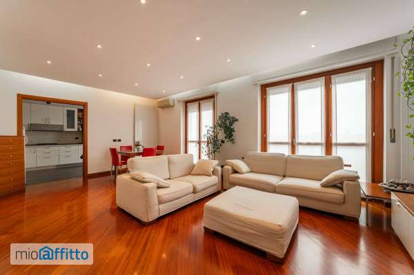 Ad. Ze quartiere maggiolina - mm marche - in uno stabile anni '60 con servizio di portineria, proponiamo in affitto una prestigiosa soluzione di trilocale per una metratura commerciale di 108 mq, posto all' 8° ed ultimo piano con ascensore. L'appartamento è composto da un ingresso diretto in un ampio salone illuminato da moderni faretti, al quale si accede alla prima balconata con esposizione esterna, cucina abitabile, doppi servizi, due camere da letto dalle quali si accede alla seconda balconata con affaccio interno ed infine un ampio ripostiglio cabina armadio, impianto di allarme per la massima sicurezza! L' immobile, in ottime condizioni interne con pavimenti i pregiato parquet e ceramica in cucina e nei bagni, dotato di riscaldamento autonomo e climatizzazione in ogni stanza, cucina compresa, si presenta completamente arredato come da foto e la camera doppia arredata con letto a castello, la completezza dell'arredo consente un'immediata possibilità di trasferimento. Completa la proprietà un vano cantina al piano s2. Punto di forza dell'appartamento è senz'altro la vista panoramica garantita dalla collocazione all'ultimo piano e dalle due ampie balconate. La zona di ubicazione è facilmente raggiungibile grazie alla vicinanza alla fermata "marche" della Linea Lilla. Richiesta € 2. 100,00 + € 200,00 per spese condominiali, nelle spese è inclusa la quota base del riscaldamento condominiale, mentre il consumo è autonomo con caldaia. Le utenze luce, gas e Tari rimangono a carico del conduttore. Libero da fine marzo! Contratto a canone concordato 3 anni + 2 o transitorio di massimo 18 mesi - deposito cauzionale pari a 3 mensilita'. Solo referenziati con garanzie di reddito dimostrabili.