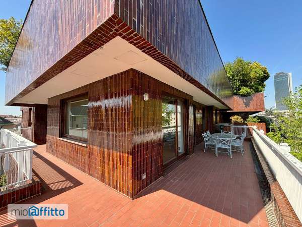 Via Tintoretto: elegante appartamento in affitto posto al settimo piano, con terrazzo e balconi affacciato sul verde di circa 210 mq. Composto da: doppio ingresso, ampio soggiorno con terrazzo, pranzo o quarta camera, cucina abitabile, studio, tre camere, tre bagni. Esposizione tripla, tranquillo e silenzioso, pavimenti in parquet, aria condizionata, immerso nel verde, con splendida vista sul nuovo skyline di Milano, City Life e le Alpi, box singolo, in contesto residenziale di altre case con giardino, ben servito dai mezzi di superficie e dalla metropolitana Linea Rossa fermata Amendola Fiera, in elegante stabile del 1960, con portineria, videocitofono, giardino condominiale.