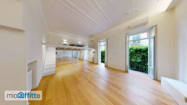 Porta Romana. Nella nota cornice di Via Orti affittiamo splendida abitazione "open space" con giardino privato così composta: ingresso su ampia cucina a vista e zona pranzo, a seguire bagno con doccia ed ampio locale soppalcato per poi raggiungere immediatamente la grande zona living parzialmente arredata con armadi su misura e mobile contenitore. Questa zona è caratterizzata da ampie porte finestra che si aprono sul giardino privato di 5o mq circa tutto esposto sull'interno e confinante con altri giardini. La zona notte soppalcata è raggiungibile comodamente dalla sala living attraverso una scala bianca in ferro sagomata ed è arredata con letto e comodini. Gli arredi presenti sono di primissima qualità, Lago design. Libero da metà aprile.