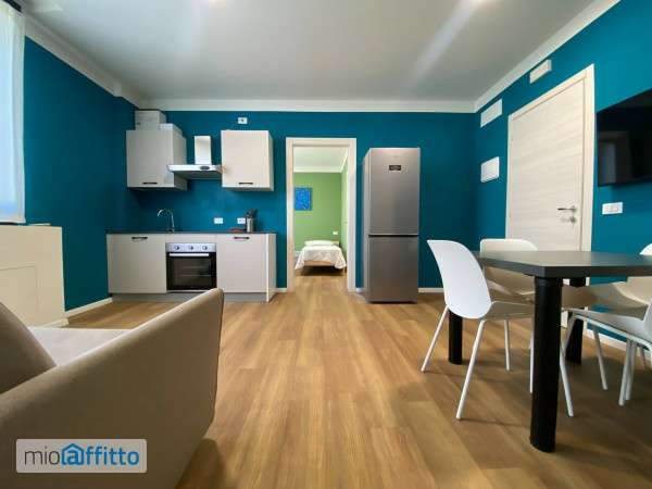 Luminoso trilocale completamente nuovo con soggiorno e angolo cottura, due camere matrimoniali e due bagni di cui uno en suite. Si entra nell'open space del soggiorno e con l'angolo cottura completo di piano ad induzione per la cottura dei cibi, del frigo con freezer e del forno. In dotazione anche tutti gli utensili da cucina (pentole, posate, piatti, etc. ). Nella zona living un divano letto matrimoniale e un tavolo con le sedie e una smart Tv. Nelle camere due letti singoli e un armadio a 3 5 ante. I due bagni sono completi di tutti i sanitari e di una grande doccia. Illuminano l'immobile tre grandi vetrate con doppia tenda una per il giorno ed una oscurante per la notte. Al piano, lavanderia con lavatrici ed asciugatrici ad uso gratuito. Le porte di entrata sono digitali e blindate. € 300 al mese di spese che comprendono le spese condominiali (Ascensore. Aria condizionata. Servizio di portineria. Posto bici coperto) e tutte le utenze, il Wifi e il servizio lavanderia (lavatrice ed asciugatrice). English version students workers: two-room apartment Bright, completely new two-room apartment with living room and kitchenette, two double bedrooms and two bathrooms, one of which is en suite. You enter the open space of the living room with the kitchenette complete with induction hob for cooking food, fridge with freezer and oven. All kitchen utensils (pots, cutlery, plates, etc. ) are also supplied. In the living area there is a double sofa bed and a table with chairs and a smart tv. In the bedrooms, two single beds each and a 3-door wardrobe. The two bathrooms are complete with a large shower. The property is illuminated by three large windows with double curtains, one for the day and one blackout for the night. On the laundry room with washing machines and dryers for free use. € 300 per mounth for the condominium fees and all utilities, Wifi and laundry service (Elevator. Air conditioning. Concierge service. Covered bike parking).