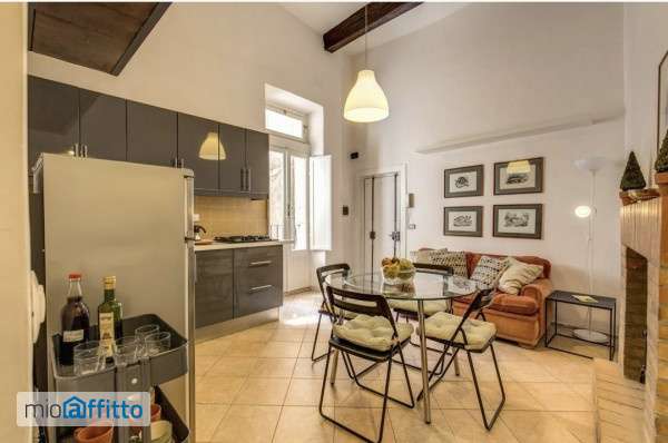 Ad. Navona vicolo dei Soldati no uso ricettivo no casa vacanza Delizioso silenzioso appartamento bilocale al 1 piano di palazzetto del 1800. Salotto-Pranzo con cucina a vista (con lavatrice) piano fuochi a gas, camera da letto matrimoniale con soppalco contenitivo, bagno doccia con finestra.