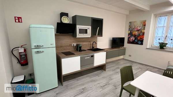 Bilocale ristrutturato e arredato con cucina (frigorifero, forno combinato, lavastoviglie) e zona soggiorno con divano letto. Bagno con doccia e lavasciuga. Camera da letto matrimoniale (possibilità di 2 letti singoli) armadio e scrivania. L’appartamento è dotato di riscaldamento radiante a pavimento, ventilazione con aria calda fredda, videocitofono, termostato separato per camera da letto e zona giorno, allarme. Il canone di affitto è comprensivo di utenze (luce, acqua, spese ascensore, luce scale, pulizia ambienti comuni, internet).