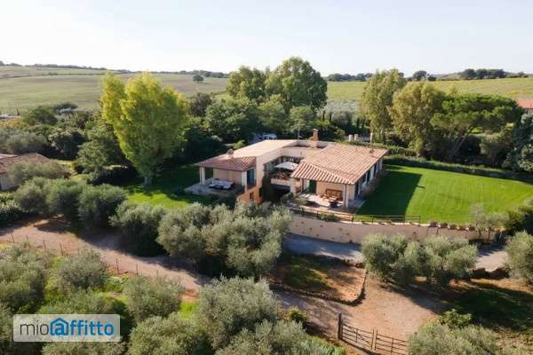 Capalbio, a pochi minuti dal mare, proponiamo in locazione per i mesi di giugno, luglio e agosto splendida villa contemporanea su due livelli contornata da ampio giardino di prato, alberi ad alto fusto, ulivi secolari che degradano sul vigneto ed uliveto di proprieta? , per una superficie complessiva di circa 7Ha. Progettata e ristrutturata di recente con grande attenzione alla luminosita? , ai giochi di luce e trasparenze ed al costante dialogo con il paesaggio, la villa presenta una planimetria a u, dove la base e? Destinata alle zone giorno ed i lati agli ambienti privati. Il piano terra accoglie una luminosa zona giorno con cucina a vista e camino centrale, distinto dalle vetrate scorrevoli sulla terrazza che ne diventa l'estensione grazie alla stessa pavimentazione in pietra lavagna. Sulla facciata frontale si trova un portico esteso in tutta lunghezza ed orientato al tramonto; ai lati opposti due portici panoramici godibili dagli ambienti privati. Gli ambienti notte, ai quale si accede da disimpegni speculari con pavimentazione in vetro satinato per favorire la luce al piano sottostante, ospitano quattro splendide camere da letto e bagni en- suite quasi tutte con accesso diretto al giardino. La padronale gode di un suo portico esclusivo. Al livello inferiore troviamo una grande sala multifunzionale che prende luce sia dall'apertura vetrata sulla corte esterna, sia da fasce di vetro soffiato al soffitto. Una parte della sala open space e? Stata adibita ad area salotto. Un’Altra parte e? Dedicata alla sala giochi con un grande biliardo in legno massiccio d’epoca, ping pong, e biliardino di design. L’ala di fronte al camino e? Adibita come zona studio con scrivania e stampante. Allo stesso piano un’altra sala relax separata adibita a camera da letto e bagno en-suite con jacuzzi, sauna. Alla proprieta? Si accede da un cancello automatizzato; all'esterno troviamo un pergolato per posti auto e uno spazio aggiuntivo vicino all’ingresso principale dove poter parcheggiare le automobili. La villa è provvista di wi-fi, tv con accesso Internet e alle principali piattaforme di streaming. Canoni mensili periodo estivo: Giugno: € 18. 000 Luglio: € 20. 000 Agosto: € 25. 000 "le presenti informazioni, immagini e planimetrie sono meramente indicative e non costituiscono elementi contrattuali"
