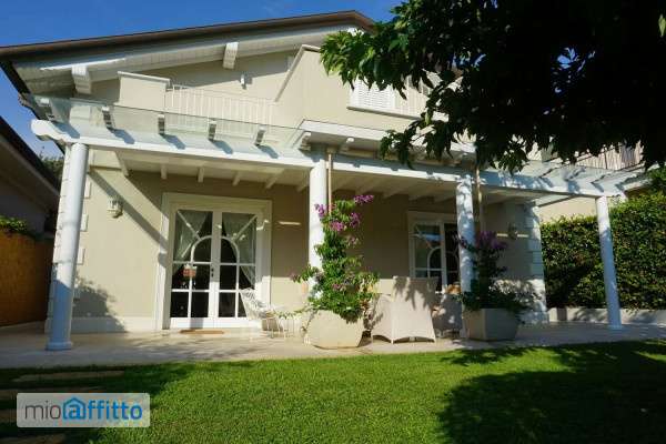 Rif 70-10 pl: il prezzo indicato si riferisce al canone mensile in caso di affitto annuale. I prezzi estivi sono diversi. Non si affittano mesi singoli. Marina di Pietrasanta Fiumetto, splendida villa, di recente costruzione, con giardino su tutti i lati e dependance situata a 300 mt dal mare e 100 mt dal Parco della Versiliana. Piano terra: ingresso, ampio open space composto da soggiorno sala da pranzo con camino e bella cucina abitabile con accesso ad ampia veranda attrezzata, lavanderia, camera matrimoniale, bagno doccia tutto rifinito in marmo. Piano 1°: grande camera padronale con bagno doccia, stanza armadi e balcone, camera doppia con cameretta di passaggio, un bagno vasca doccia tutto in marmo, Dependance: camera matrimoniale con bagno doccia, aria condizionata. Arredata con gusto e finiture di pregio Disponibile per locazione turistica annuale e per stagione estiva. Contattateci per conoscere i prezzi e la disponibilità. Cin: it046024c2ua3cepcb.